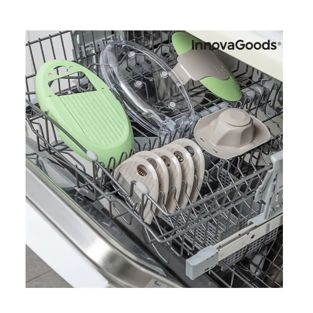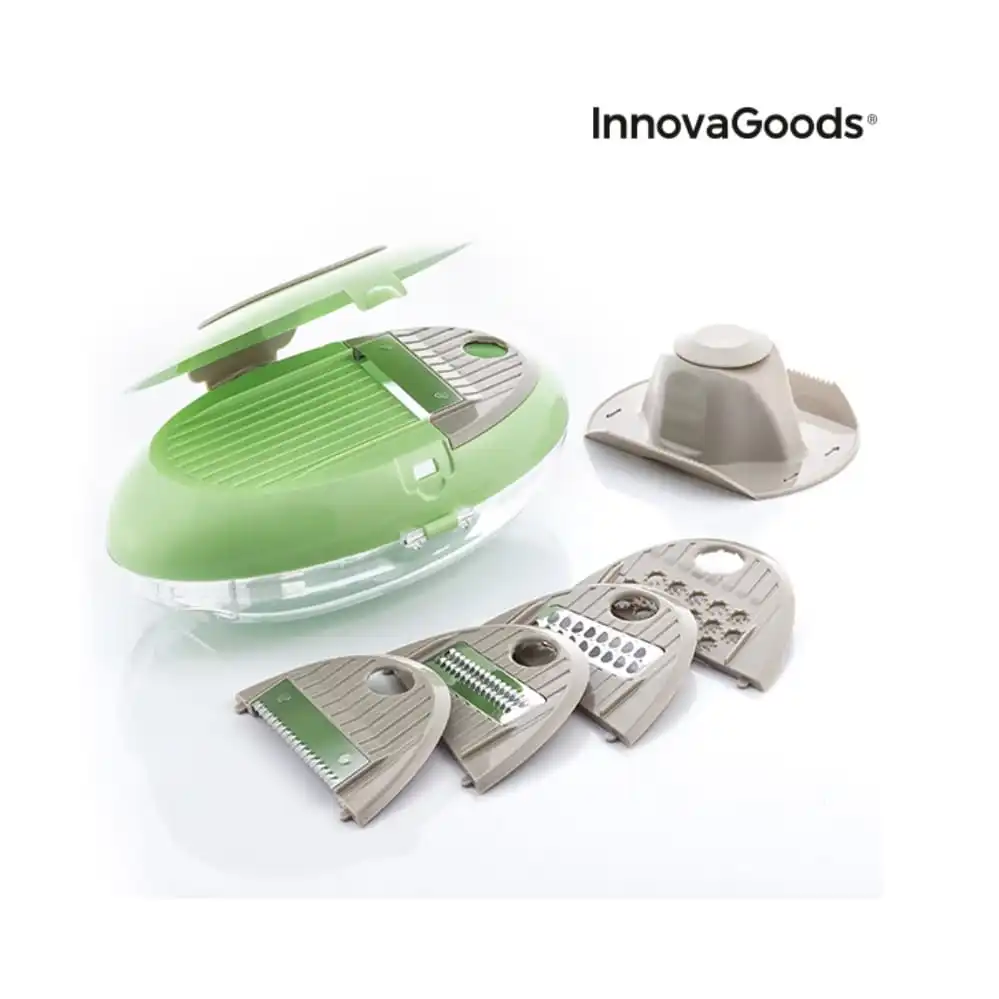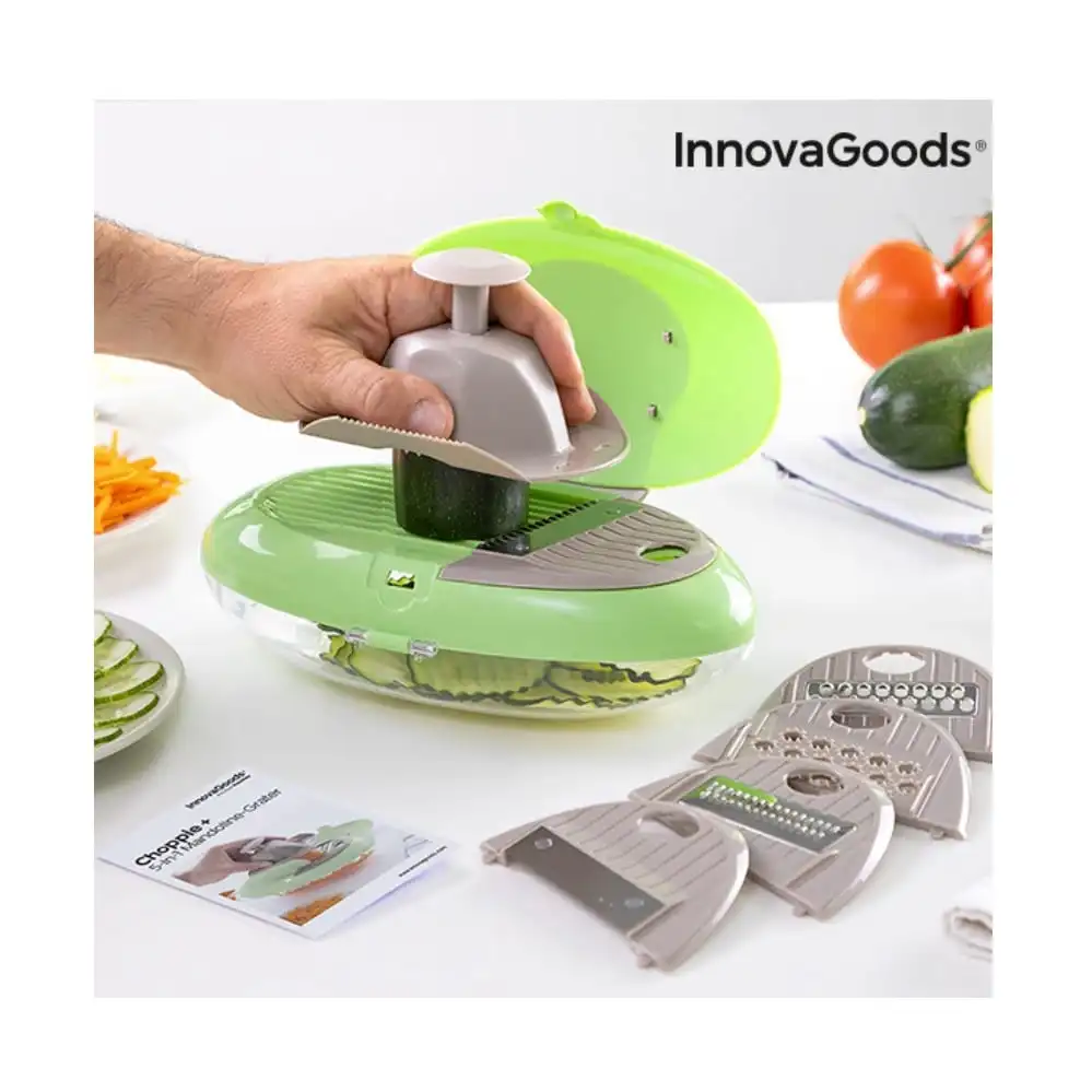 Et enkelt og sjovt redskab til din madlavning! Dette alsidige sæt har et indbygget mandolinlåg for at høvle, rive og strimle. Det er specielt egnet for at skive grøntsager rigtig tyndt.
