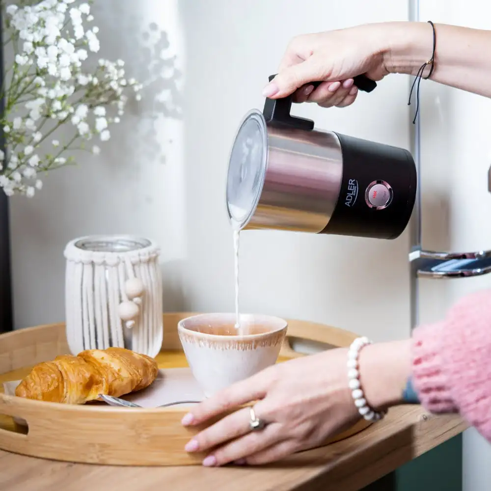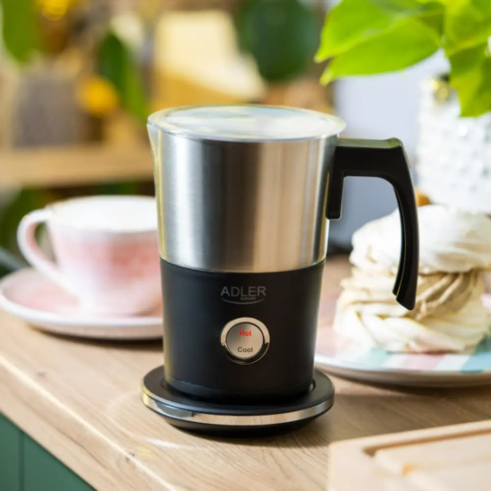 Mælkeskummeren er en enhed som lader dig lave kaffe med mælkeskum som fra den bedste café. Den største fordel med mælkeskummeren er at den kan anvendes med både kold og varm mælk. Hvis du holder af rigtig varm kaffe vil du synes om at enheden varmer selve mælken, og samtidig skummer drikken for at skabe et cremet skum. Enheden er udrustet med en magnetomrører. Du kan tilberede op til 300 ml varm mælk, eller op til 120 ml mælkeskum.