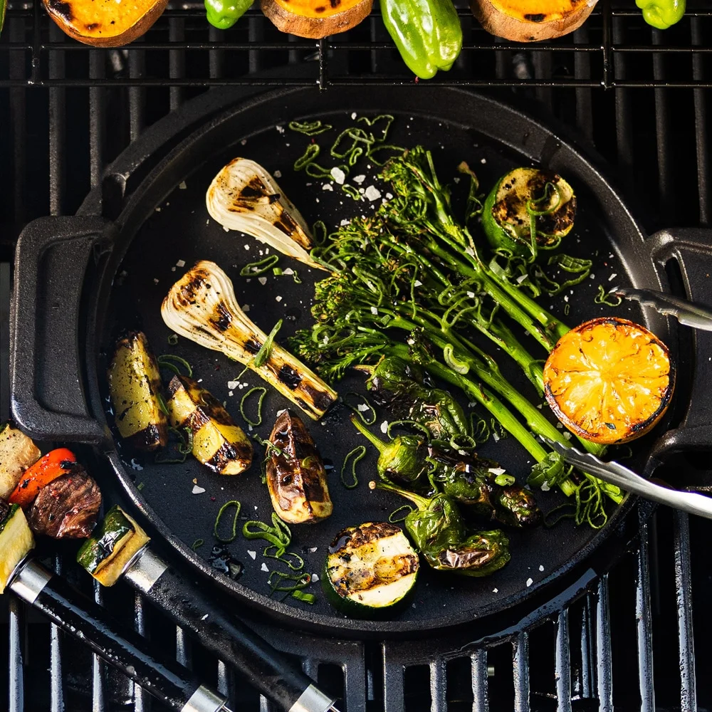 Anton Oliver gjutjärnspanna är ett utmärkt tillbehör för både grillar och kök. Pannan passar perfekt på MGS-gallret av Anton Oliver-grillar och kan även användas med andra grillmärken. Den släta gjutjärnsytan gör det lättare att steka klibbiga rätter, till exempel kan du göra en omelett eller till och med en pannkaka på grillen. Du kan använda pannan på din grill som om det vore en vanlig stekpanna av gjutjärn – prova att bryna köttfärsen och njut av bolognese tillagad i grillens mjuka omfamning.