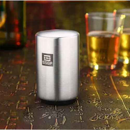 Automatisk kapselåbner i rustfrit stål. Enklere end dette bliver det ikke at åbne en sodavand eller en øl. Placer bare åbneren på flaskehalsen og tryk til. Den indbyggede magnet absorberer flaskens kapsel. Kan bruges i hjemmet, på barer, hoteller, restauranter og andre festlokaler.