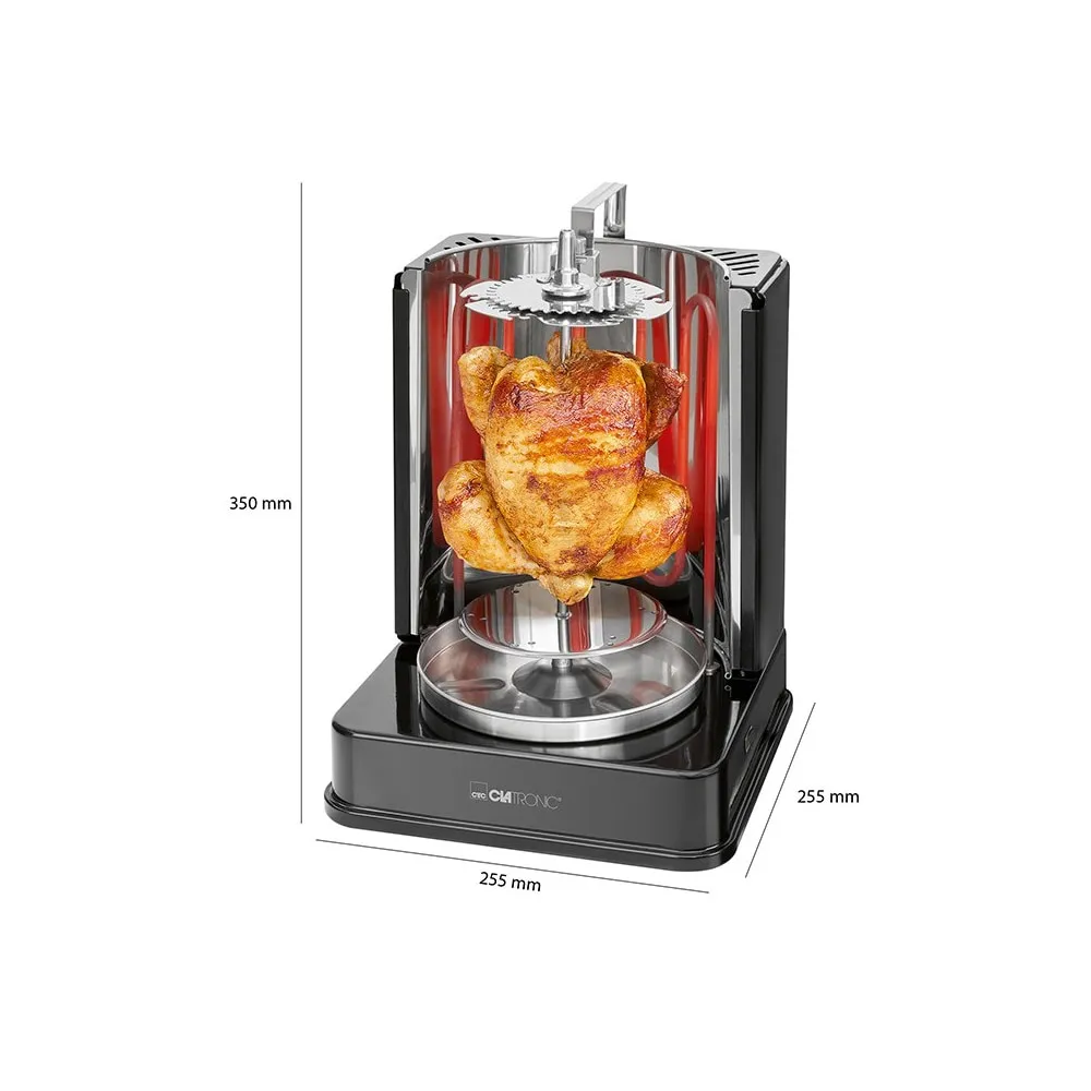 Dette er en kompakt og fleksibel elektrisk grill til hjemmebrug med multifunktion fra Clantronic. Du kan nu have dit eget pizzeria derhjemme med grillet kebab eller gyros. At grille kylling er noget, der også passer perfekt til apparatet, hvis du ikke spiser kød eller foretrækker at grille grøntsager, fungerer det selvfølgelig lige så godt! Aggregatet er kraftfuldt med 1400W og en funktion, der giver 360° rotation for en jævn stegeflade og et optimalt grillresultat.
