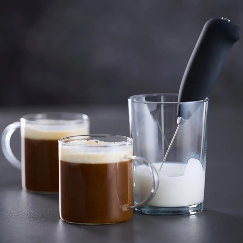 Hæld mælk i en passende beholder, sæt mælkeskummeren ned i mælken og tænd for den med On/Off-knappen.