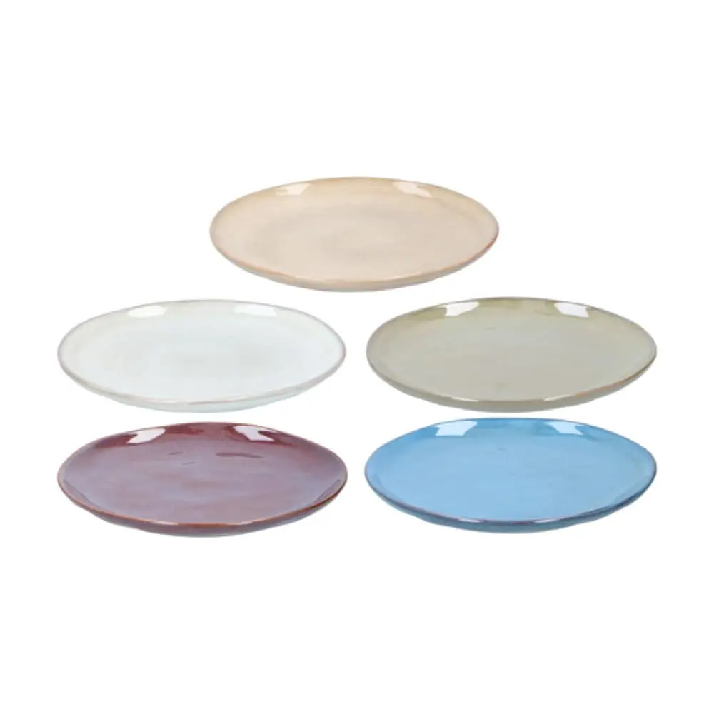 En lille desserttallerken i jordnære, melerede farver. Kan for eksempel anvendes tl servering af dessert, kaffebrød eller mellemmåltid.