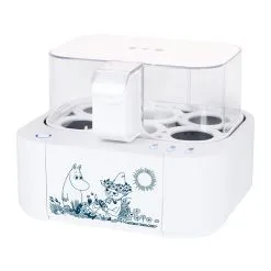 Æggekogeren er smart og minimalistisk designet i hvid med stilfulde Mummi-dekorationer, indbygget målebæger, æggeprikkernål og opbevaringsrum til 6 æg. Med det valgte sprog, signalet og indikatorlyset kan niveauerne for æggenes tilberedningstid tydeligt følges.