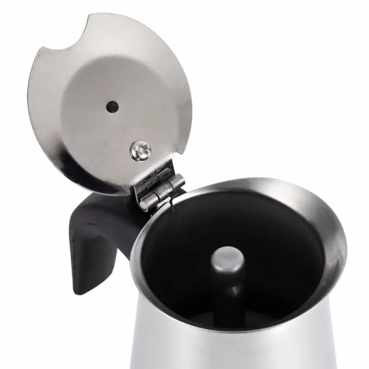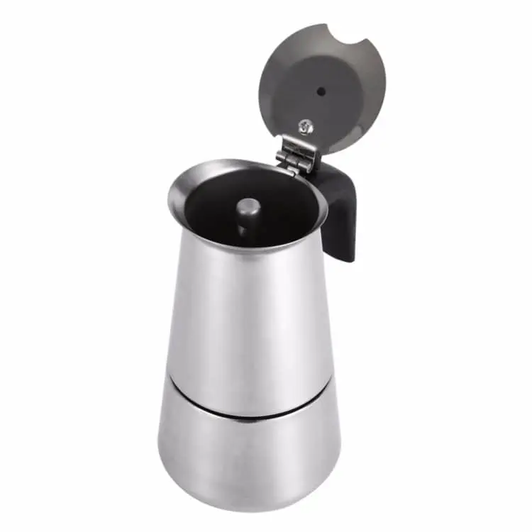Kaffemaskine til espresso der er fremstillet af et rustfrit stålmateriale af høj kvalitet, der er sikkert og holdbart at anvende.