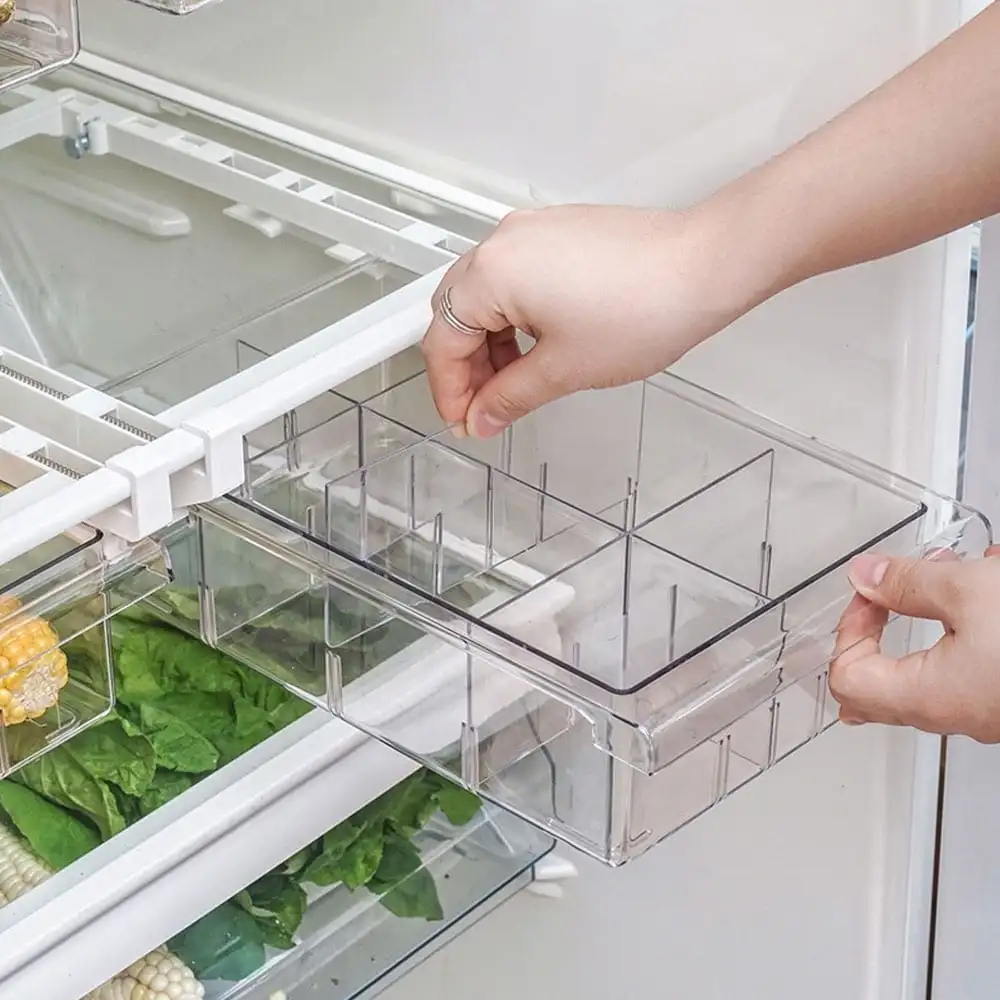 Med denne boks kan du ordne ekstra opbevaringsplads i dit køleskab, ved at hænge den op i hylderne.