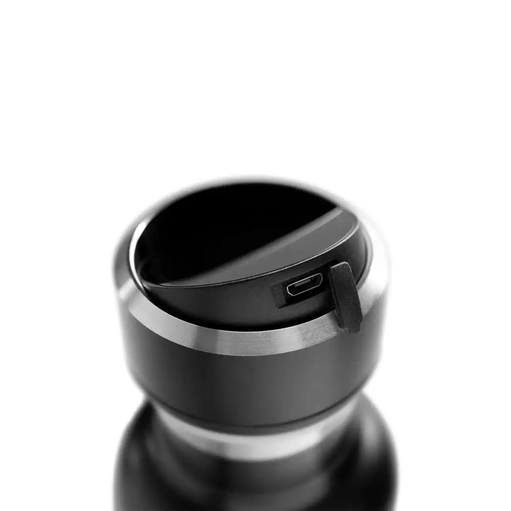 Termosen är tillverkad i rostfritt stål med dubbla stålväggar för bra isolering, rymmer 750ml vätska, drivs med ett uppladdningsbart Litium-Polymer batteri som laddas via en medföljande USB kabel. Displayen på locket visar aktuell temperatur på vätskan i termosen.