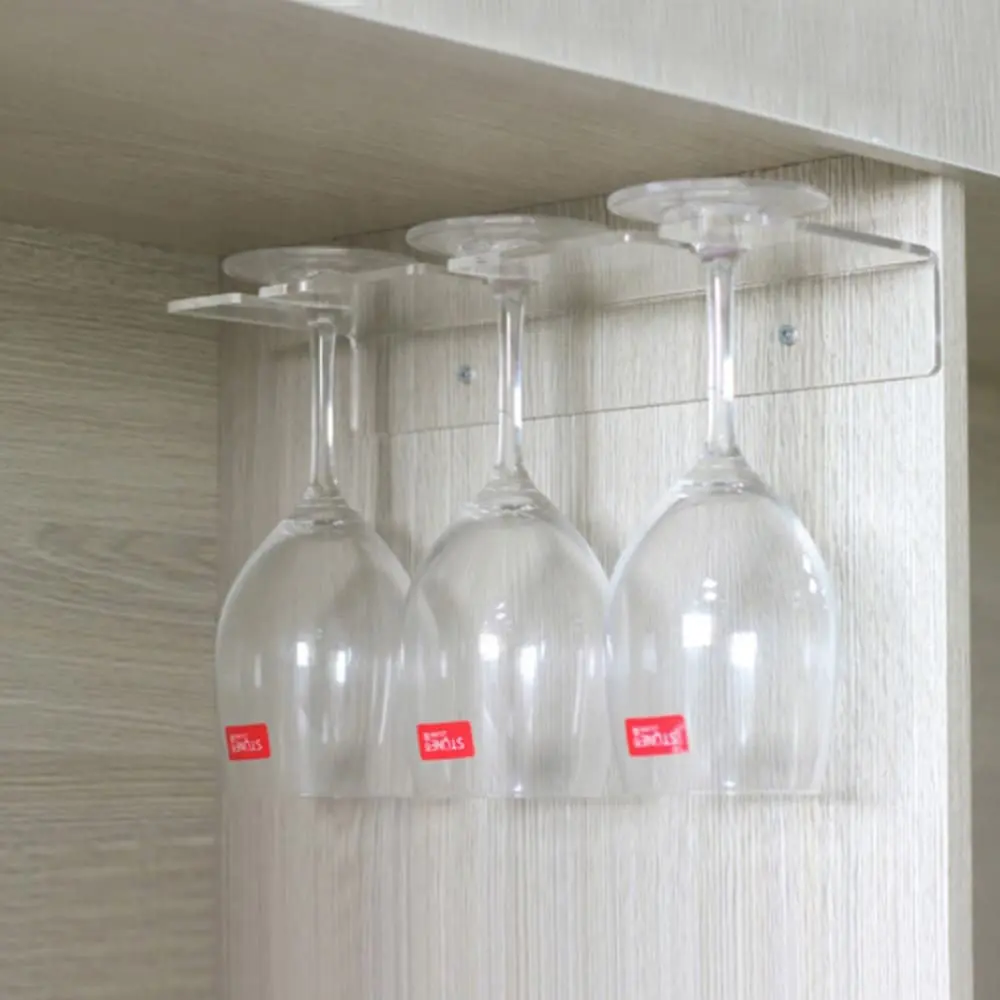 Glashænger til vinglas, i transparent akrylplast. Monter vinglasholderen under ønsket hylde/bordplade, og organiser dine vinglas eller andre glas med smal fod på en professionel måde.