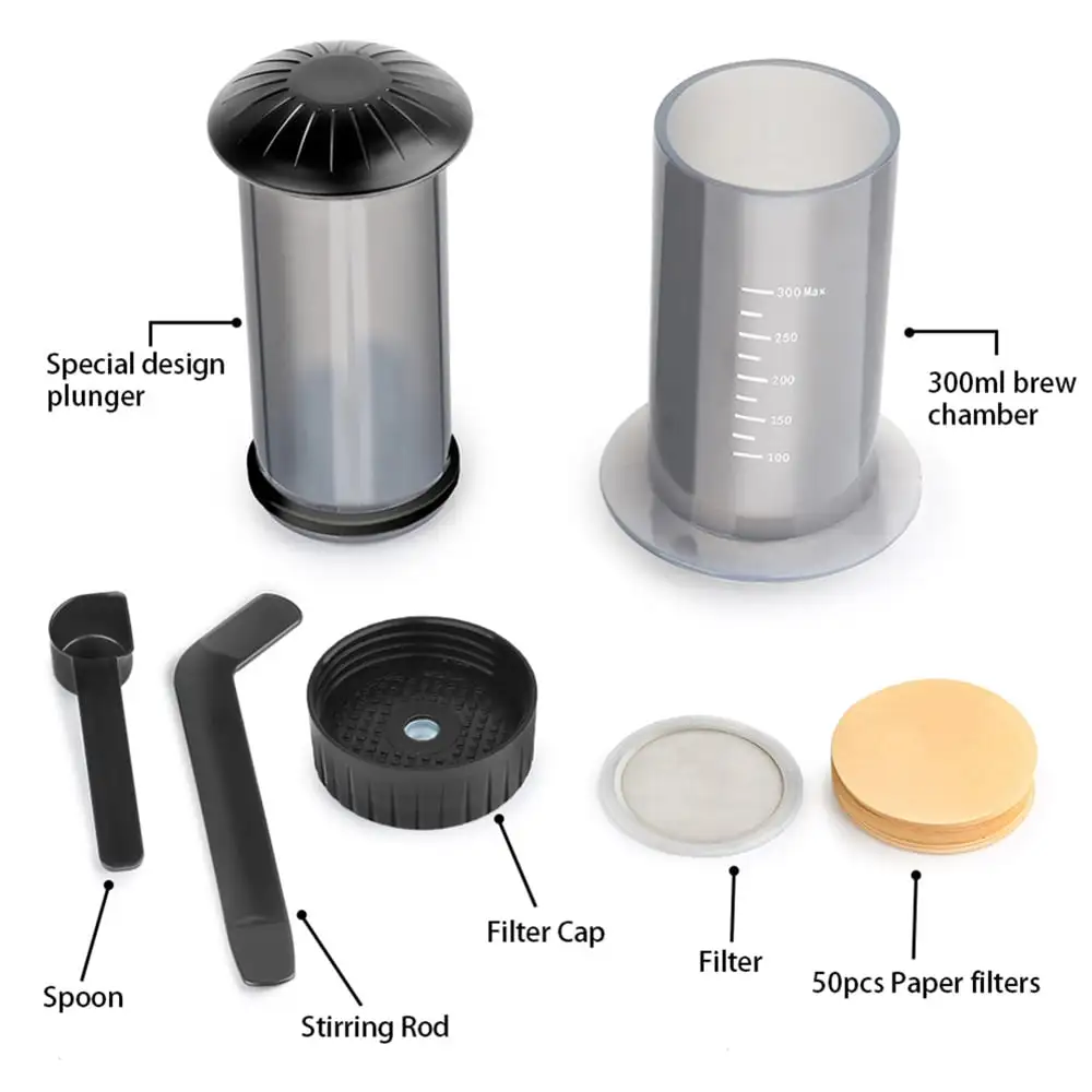 Alt hvad du behøver ud over denne presse er kogende vand og malede kaffebønner, så kan du presse kaffen direkte ned i kruset.