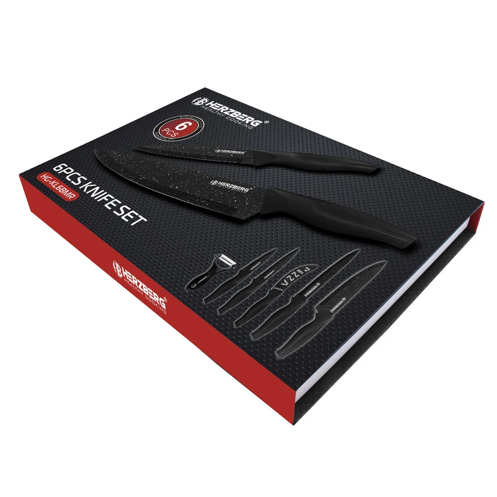 Herzberg Knivsæt – Et alsidigt knivsæt i højkvalitets rustfrit stål med ergonomisk designede håndtag for mere behagelig brug. Opdater dine køkkenredskaber med nye skarpe knive for at gøre din daglige madlavning lettere.