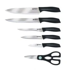 I dette sæt indgår gem forskellige knive, to skærebrætter og en saks.
