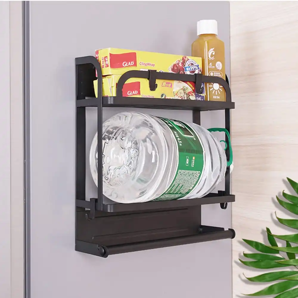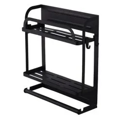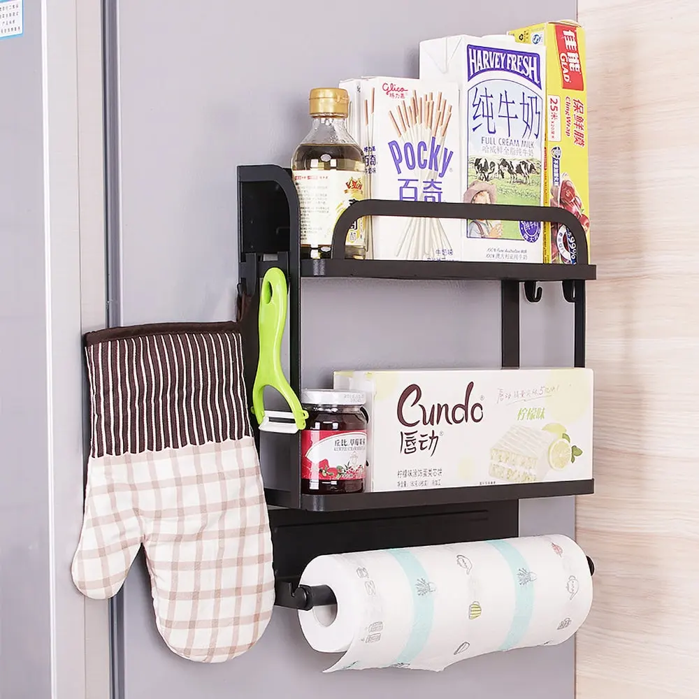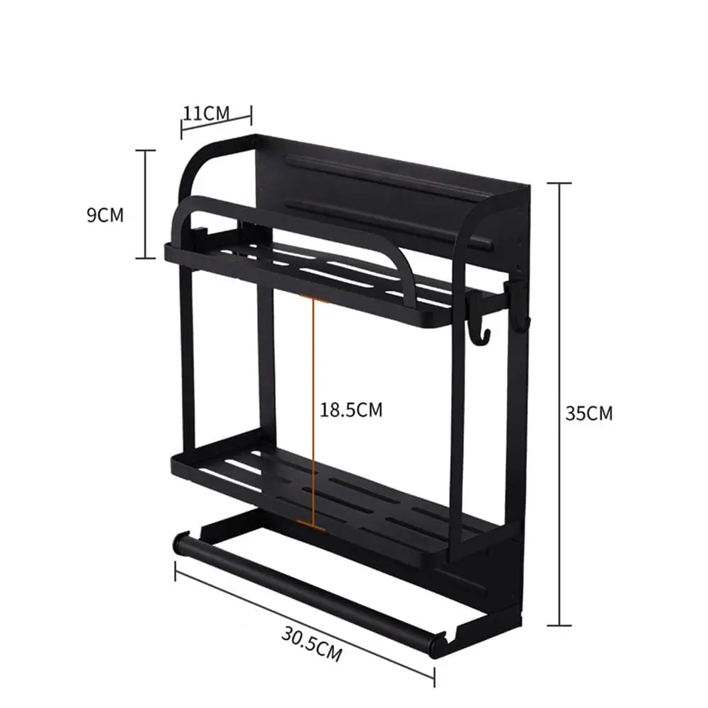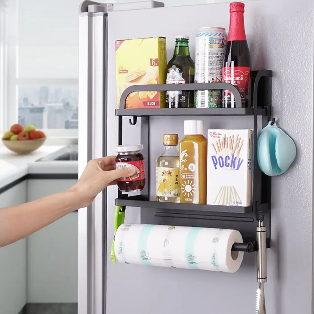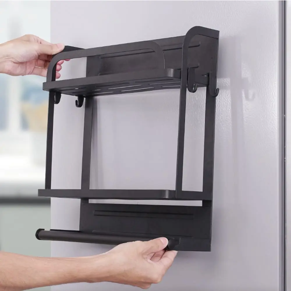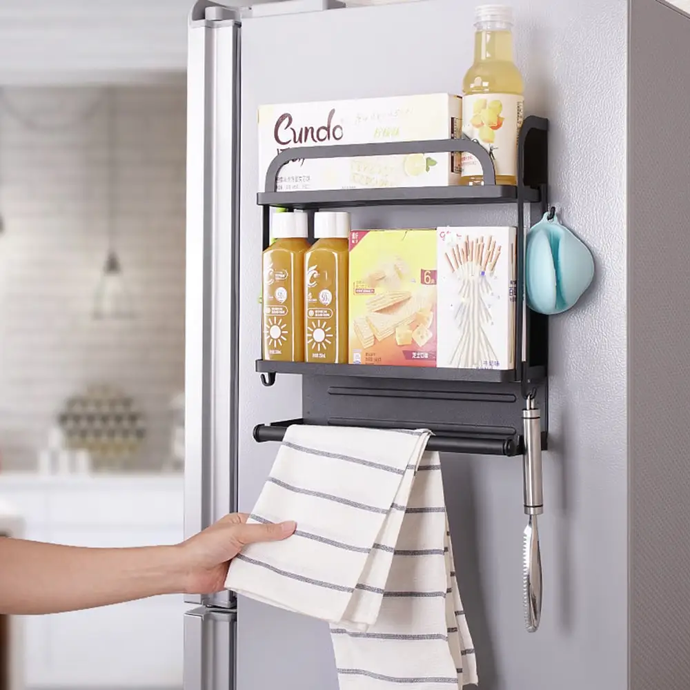En hylde til for eksempel krydderier, som let kan fæstes på køleskabet takket være magnetfæstet.