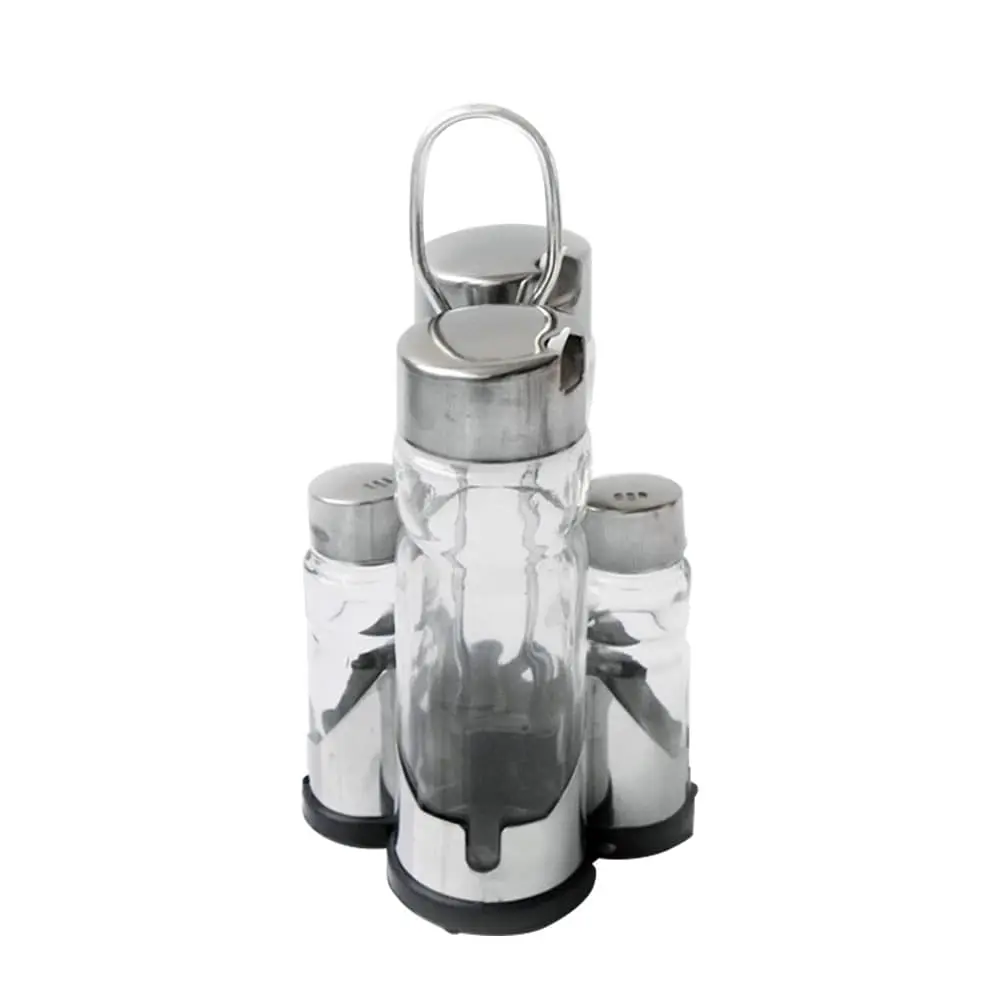 Krydderopbevaring i rustfrit stål med 4 glasbeholdere