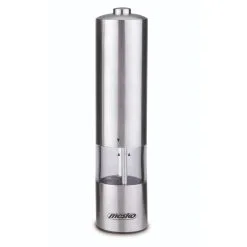 En elektrisk peberkværn er en perfekt løsning når vi vil krydre retten med lidt friskmalet peber eller salt. Den er lavet af ristfrit stål med højkvalitative keramiske quernsten. Der findes mulighed for at justere grovheden. Den drives med 4 AA-batterier.
