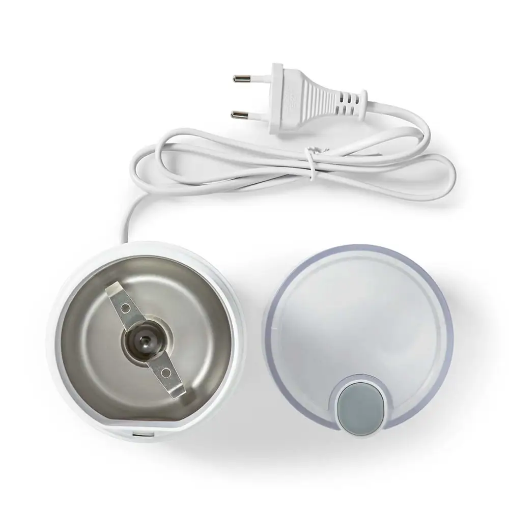 Friskmalet kaffe er et must for alle kaffeelskere. Med Nedis-kaffekværnen kan du nemt male kaffebønner til en lækker kop kaffe. Tilsæt hele kaffebønner, luk låget og tryk på knappen for at starte. Når du slipper knappen stopper kaffekværnen med at male. På denne måde kan du få forskellige slags perfekt malet kaffe lige fra fintmalet til groftmalet. Du kan selv holde øje med processen gennem det gennemsigtige låg.