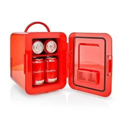 Bærbart, personligt minikøleskab som holder din mad eller drik kold. Du kan let opbevare 6 dåser med drikkevarer i standardstæørrelsen 33 cl. På en aftagelige hylde kan du placere mindre ting som yoghurt, mælk, frugt eller en smoothie. Den kompakte og pladsbesparende konstruktion gør at du kan placere det på trange steder hjemme, i arbejdsværelset eller på kontoret. Eftersom det er let og har et bærehåndtag er det enkelt at tage med sig. Kolde drikke holder si kolde i fere timer efter at det bærbare køleskab er blevet slukket. To strømkabler indgår for både almindelige vægudtag og 12 V-cigarettænderudtag i biler.