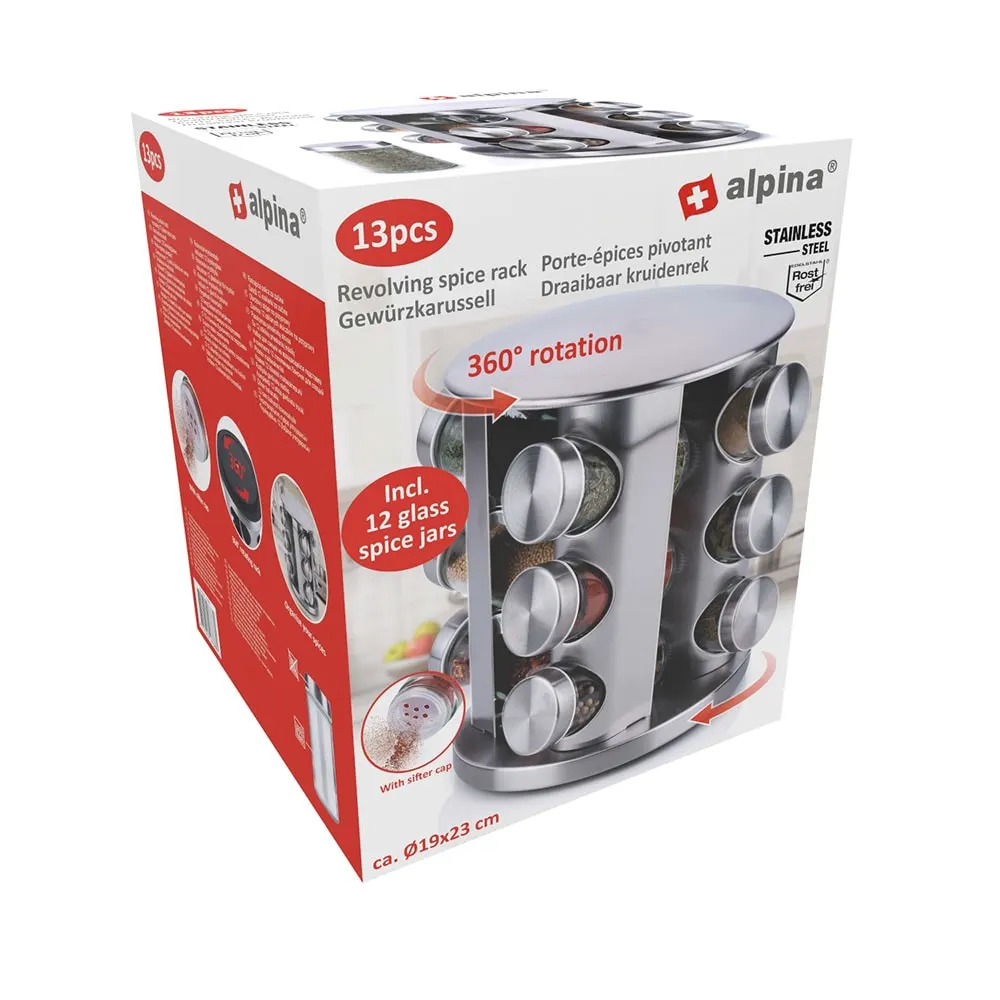 En hylde med 12 bøtter til alle dine krydderier som både letter madlavningen og samtidig fungere som en fin indretningsdetalje i køkkenet.