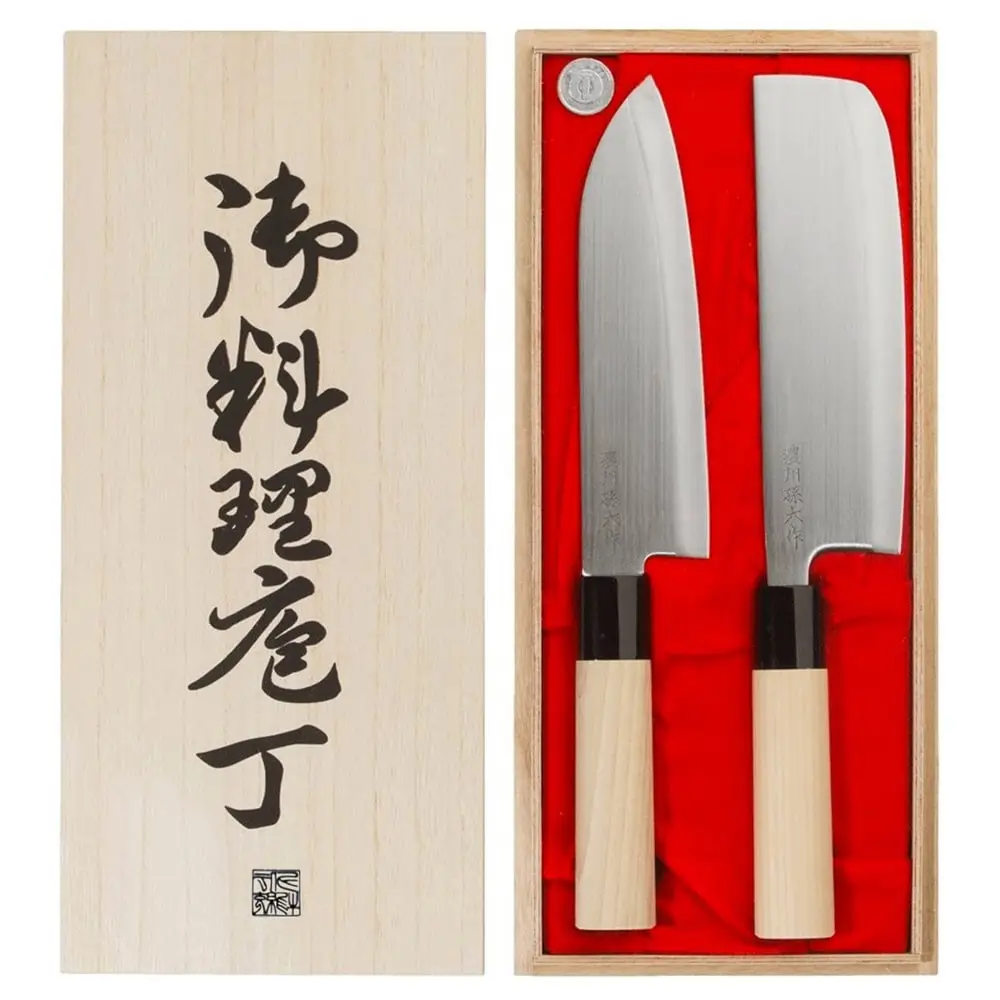 SATAKE’s japanska knivkultur repræsenteres her af en santukokniv og en grøntsagskniv.