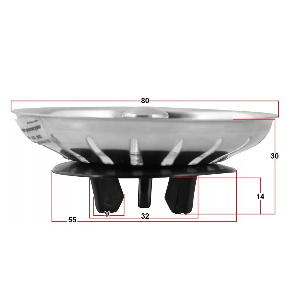 Mått: Sil Ø 80 mm / Gummi: Ø 55 mm