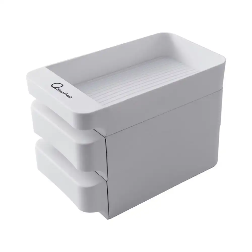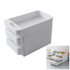 Fritstående og stabelbare opbevaringskasser til køleskabet, de to nederste rum er formet til opbevaring af æg, 15 æg pr. rum.