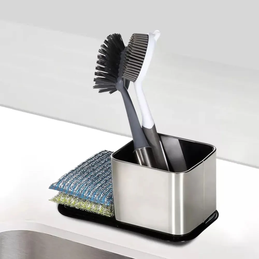 Opbevaring af opvaskebørste, opvaskesvamp og opvaskemiddel Stilrent opvaskestativ til opvaskebørste og karklud!